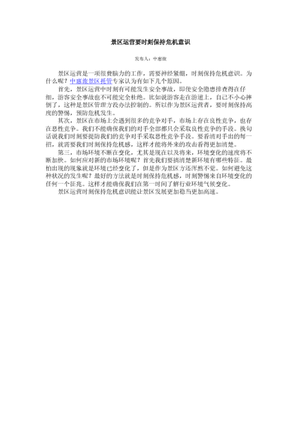 景區(qū)運(yùn)營要時(shí)刻保持危機(jī)意識(shí)