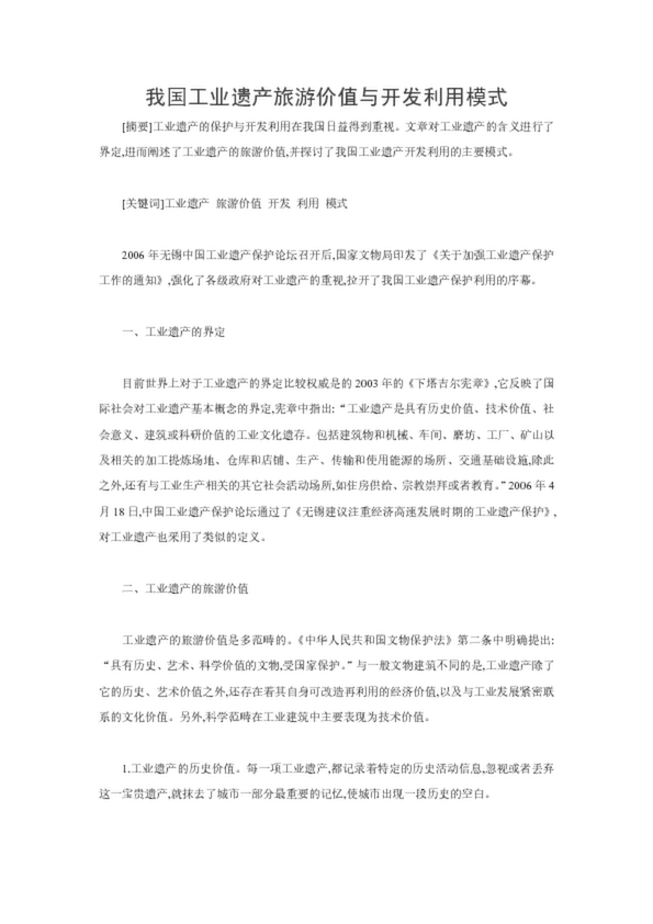 我國(guó)工業(yè)遺產(chǎn)旅游價(jià)值與開發(fā)利用模式