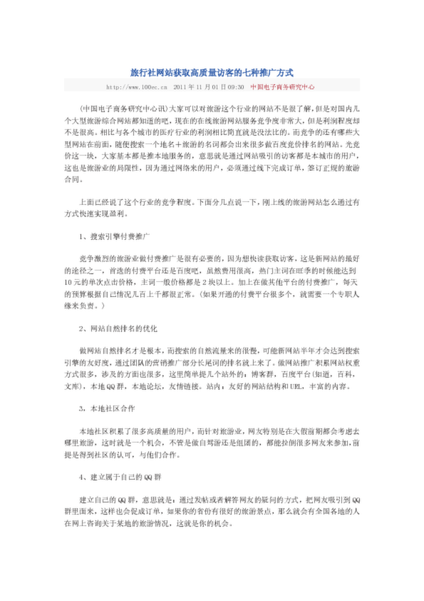 下面分幾點說一下,旅行社網站獲取高質量訪客的七種推廣方式,