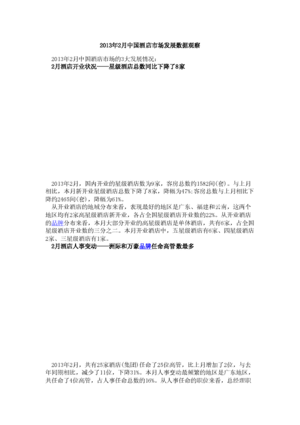 2013年2月中國(guó)酒店市場(chǎng)發(fā)展數(shù)據(jù)觀察